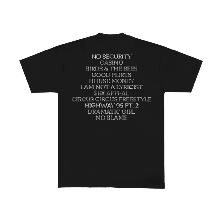 Black unisex tee featuring CA$INO album cover design on the front, and tracklist design on the back.Â